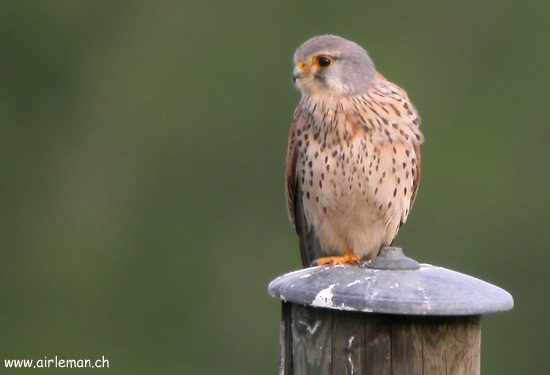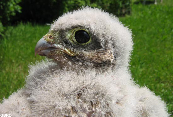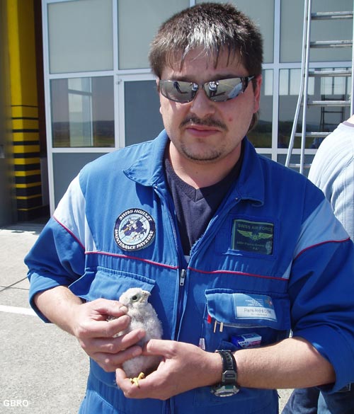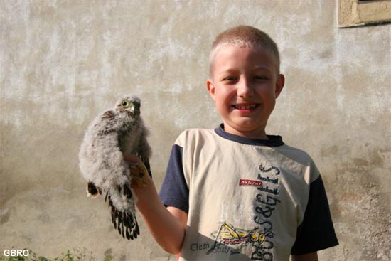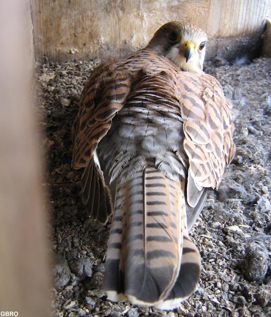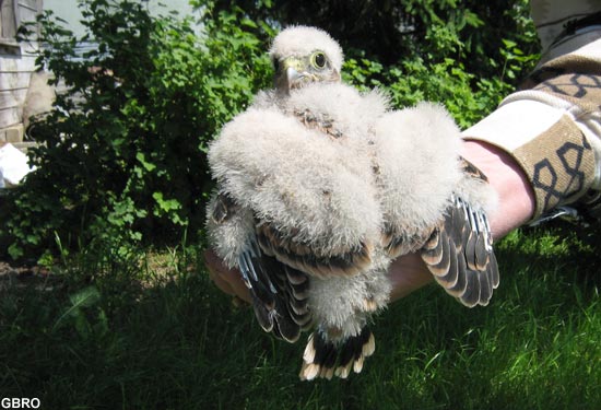 fièrement une jeune Crécerelle née dans un hangar de la place.