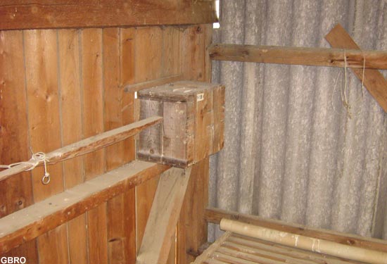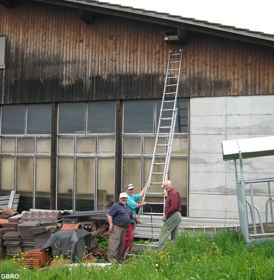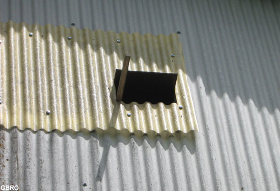 Disposition du nichoir, à côté de la fenêtre d’un hangar