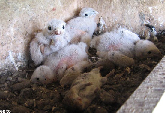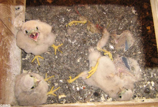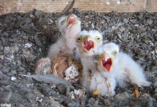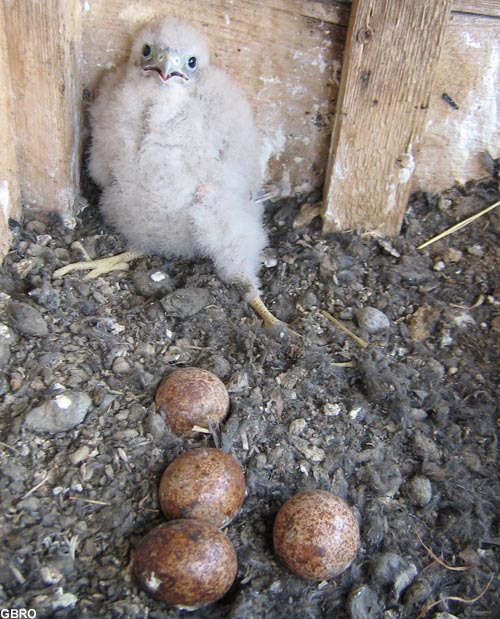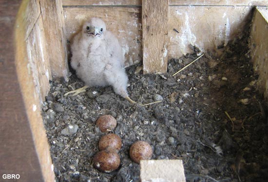 du nichoir : les faucons ne construisent pas de nid ; l’adulte se contente de
