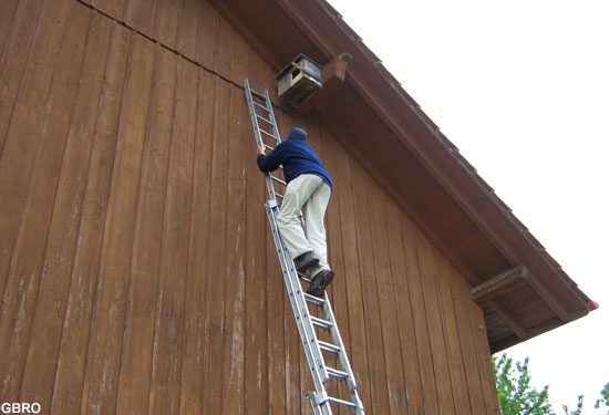 Emplacement idéal pour un nichoir : sur la face d’un hangar, près
