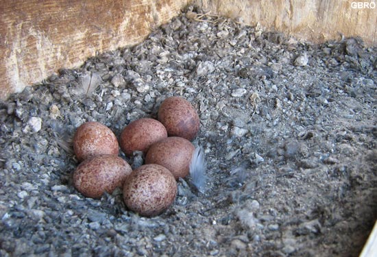 Début de ponte : les oeufs sont de coloration rousse chaude; remarquez
