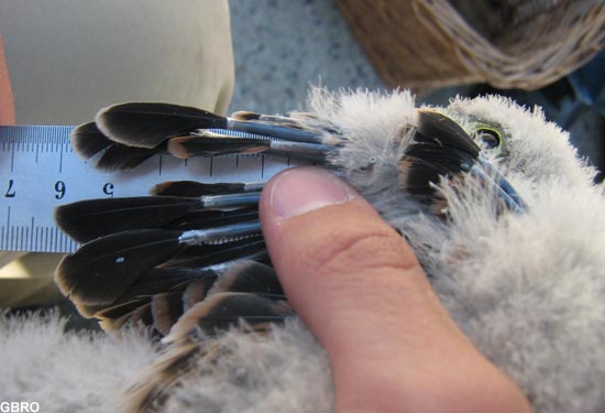 Mensuration de la longueur de la 3e rémige :