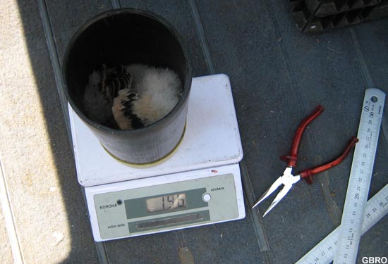 Les jeunes sont amenés au sol afin d’être mesurés et bagués.