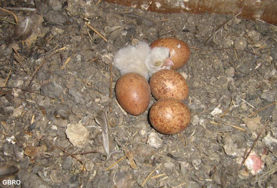 Ici , seul un des 5 oeufs a éclos : le reste de la ponte est inféconde.
