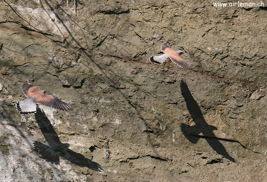 Deux mâles convoitant le même site dans une falaise de molasse tournoient